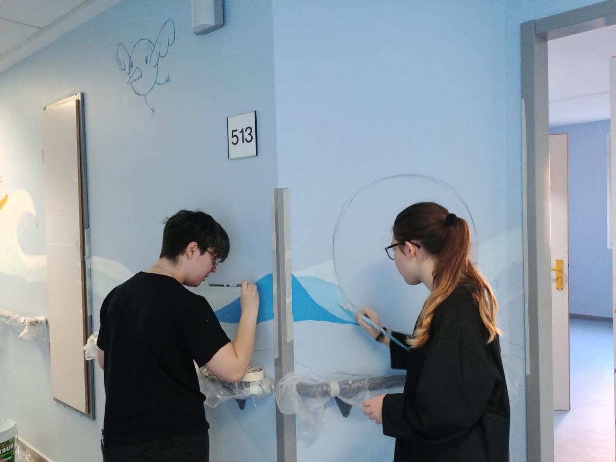 Parece la simple decoración de unas paredes, pero la iniciativa del Bachillerato de Artes del IES Al-Qázeres en el hospital San Pedro de Alcántara ... mezcla varios ingredientes que la hacen interesante y novedosa. La planta quinta de este veterano hospital será el lugar que dará cabida al nuevo área de Pediatría, en función de los cambios generados por la apertura del nuevo Hospital Universitario. Después de décadas en la planta primera, el lugar en donde se ubican los pacientes más pequeños abandona este espacio y gana en luminosidad, un aspecto que siempre otorga un punto especial de alegría para los que pasan por el difícil trance de una recuperación o un tratamiento.