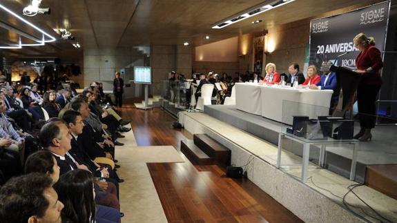 La presidenta de la Asamblea de Extremadura, Blanca Martín, inauguró el acto conmemorativo del 20 aniversario de la constitución de la Asociación Oncológica Extremeña (AOEX), en el que intervinieron además el presidente de la Junta de Extremadura, Guillermo Fernández Vara, la delegada del Gobierno en Extremadura, Cristina Herrera, el alcalde de Mérida, Antonio Rodríguez Osuna, y la presidenta de AOEX, Isabel Rolán.