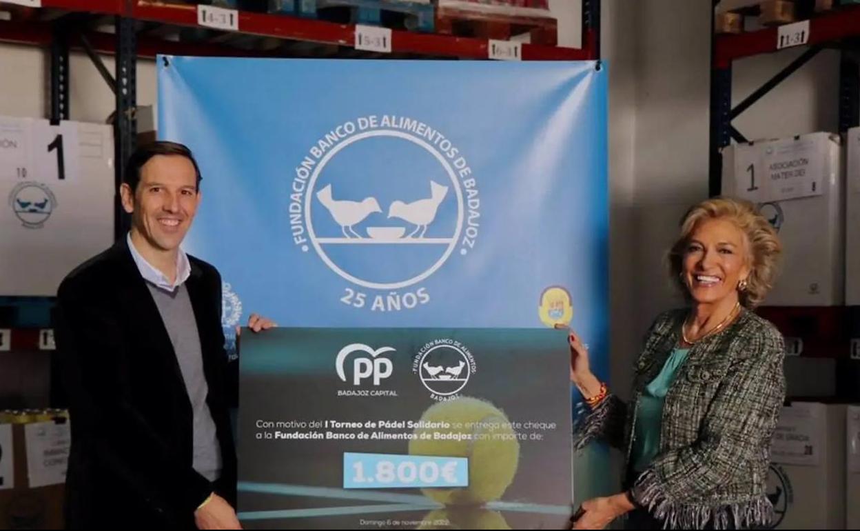 El coordinador local del Partido Popular en la ciudad de Badajoz, Antonio Cavacasillas, entregó el pasado jueves a la presidenta de la Fundación Banco de Alimentos, Cristina Herrera, la recaudación obtenida en el I Torneo Solidario de Pádel, que se celebró el pasado fin de semana.