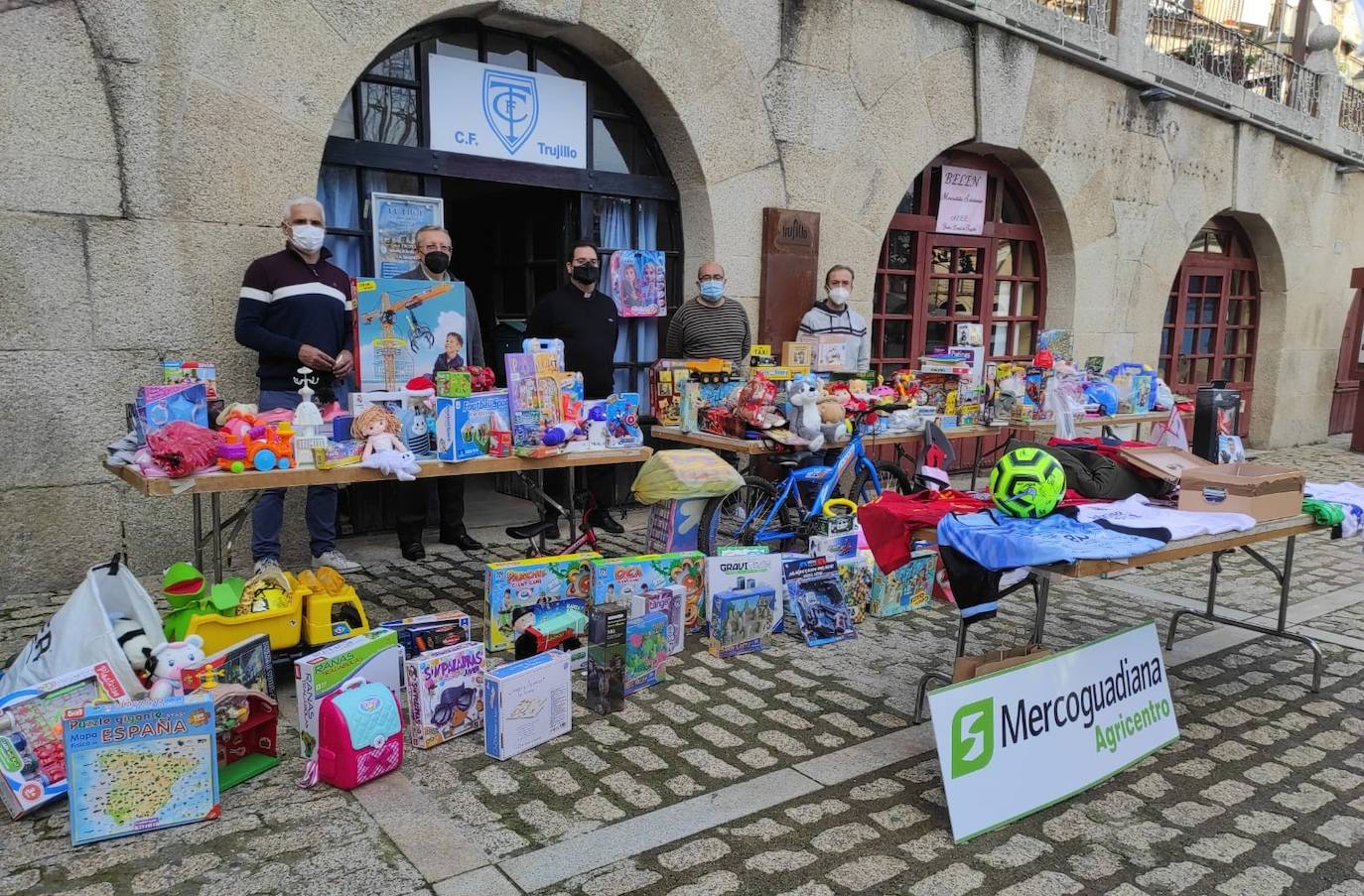 La peña El Basilisco, junto con el C. F. Trujillo, pusieron el punto y final el pasado domingo a la VI edición de la campaña solidaria 'Regala un juguete', que arrancó a mediados de diciembre. En ese tiempo, se han recogido unos 500 regalos. Aunque la gran mayoría se han donado en Trujillo, también se han obtenido juguetes en Madroñera, con la colaboración de Inés Cancho. El objetivo es que ningún menor de la zona se quede sin su regalo en la noche Reyes, según fuentes de la organización. «Casi todos los juguetes están nuevos», señala uno de los promotores, Antonio Alvarado.