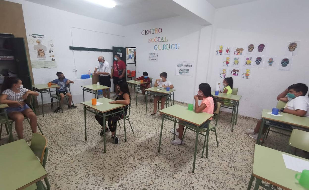 El comedor social del Gurugú lleva desde principios de julio atendiendo a 45 niños de edades comprendidas entre 7 y 14 años. Una participación más limitada que años anteriores debido a la necesidad de adaptar el espacio a las circunstancias sanitarias actuales incorporando las medidas de prevención recomendadas; gel hidroalcohólico, felpudo para desinfectar a la entrada, aforo limitado, señalización de distancias y ampliación del comedor, entre otras.