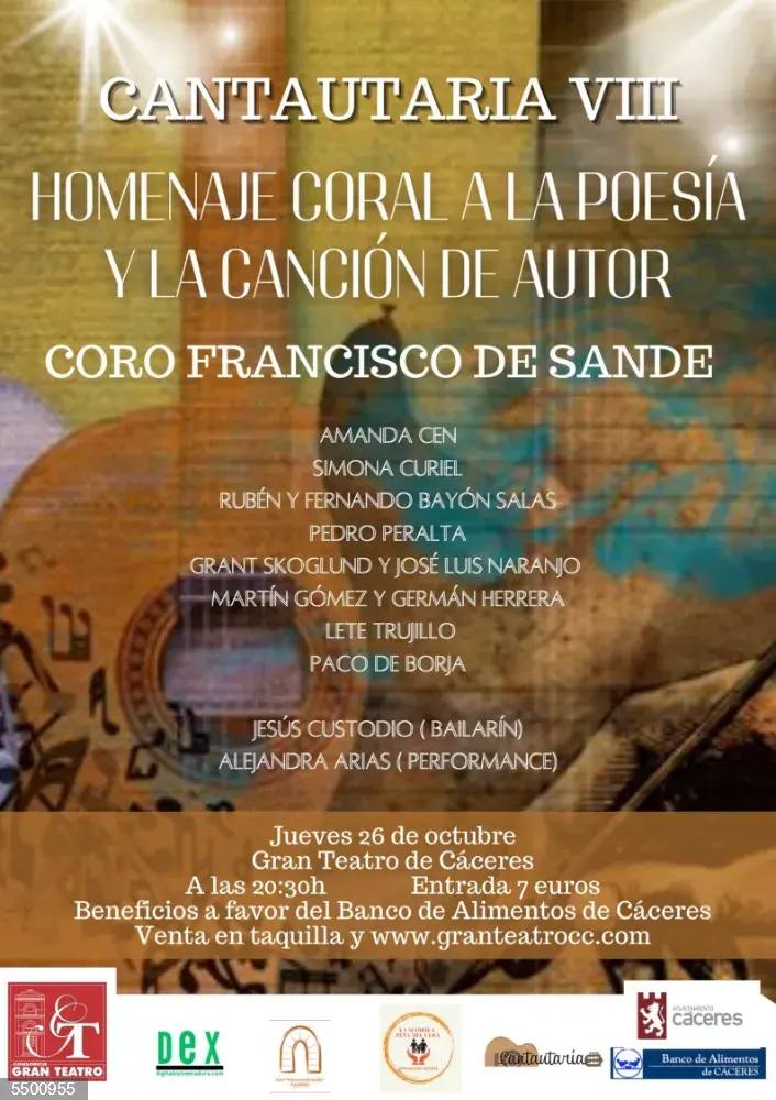 El certamen Cantautaria ha organizado un concierto solidario a favor del Banco de Alimentos de Cáceres y que tendrá lugar el jueves, 26 de octubre, en el Gran Teatro de la capital cacereña.