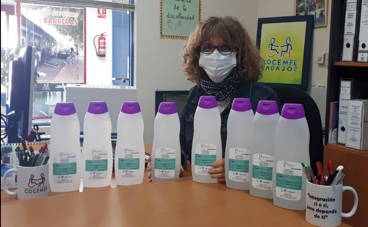 Cristian Lay dona un amplio lote de gel hidroalcohólico a Cocemfe Badajoz