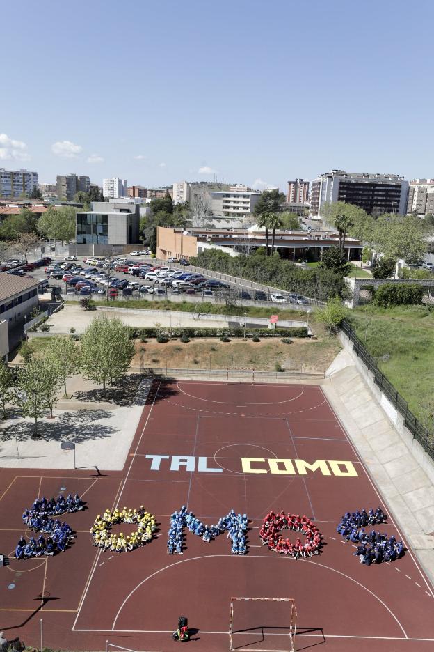 Coincidiendo con la jornada de sensibilización del Día Mundial del Autismo, el colegio celebró ayer el décimo cumpleaños del aula con una actividad en la que los protagonistas fueron sus alumnos. Los 204 escolares de Educación Infantil y Primaria representaron en el patio del centro el lema del aniversario, 'Tal como somos', y el corazón que simboliza el autismo, todos vestidos con camisetas y gorras azules, rojas y amarillas, en alusión a los colores que dan visibilidad a este trastorno del neurodesarrollo. La canción 'Mensajes del agua', de Macaco, puso música al lema del aniversario con la letra: «Somos una marea de gente, todos diferentes remando al mismo compás».