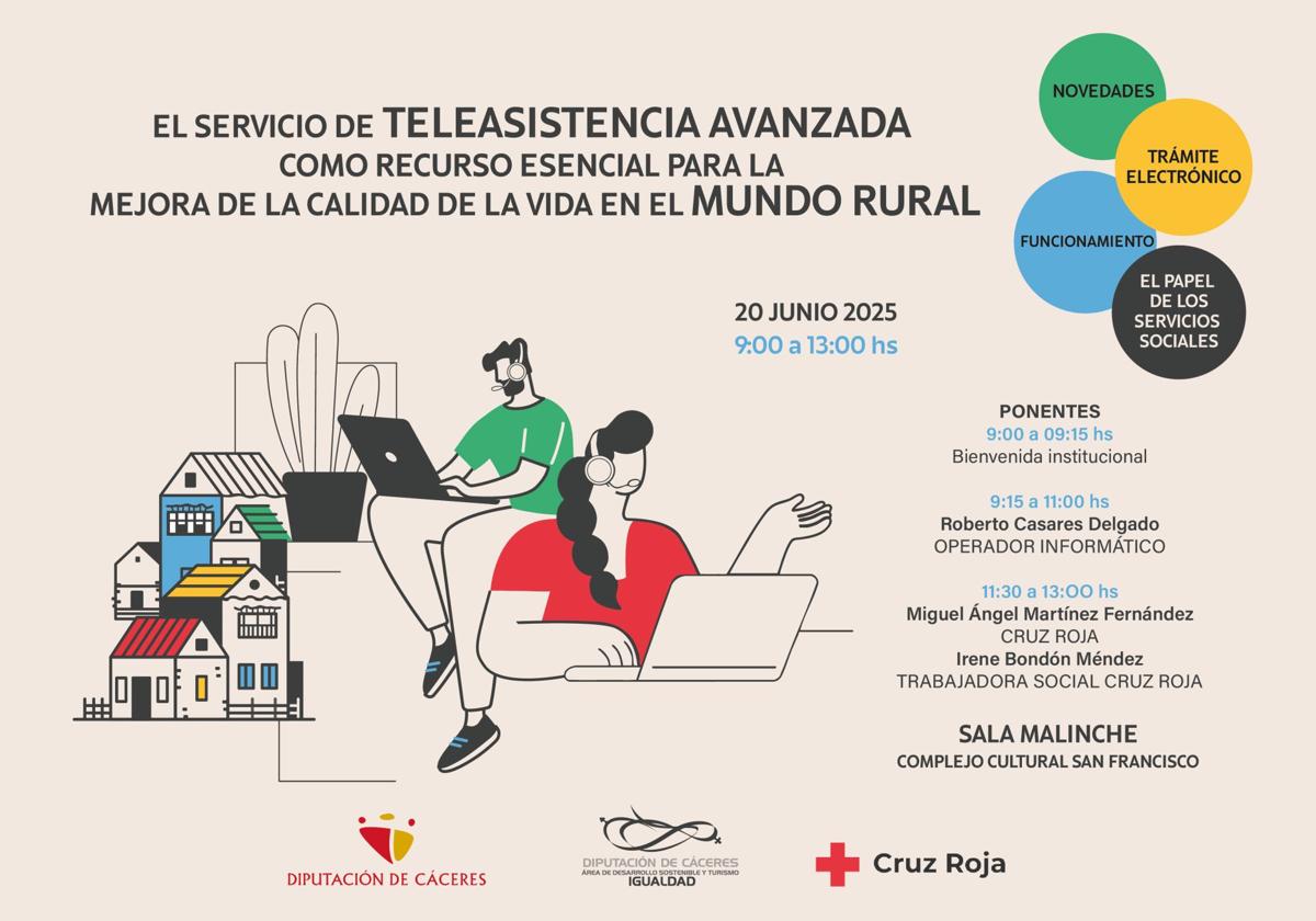 Será el viernes 20 de junio en la Sala Malinche del Complejo Cultural San Francisco en Cáceres, en horario de 09:00 a 13:00 h. Esta sesión formativa certificada busca apoyar a las y los profesionales en los Servicios Sociales de Base en la implantación y consolidación de los trámites del Servicio de Telasistencia de la provincia.