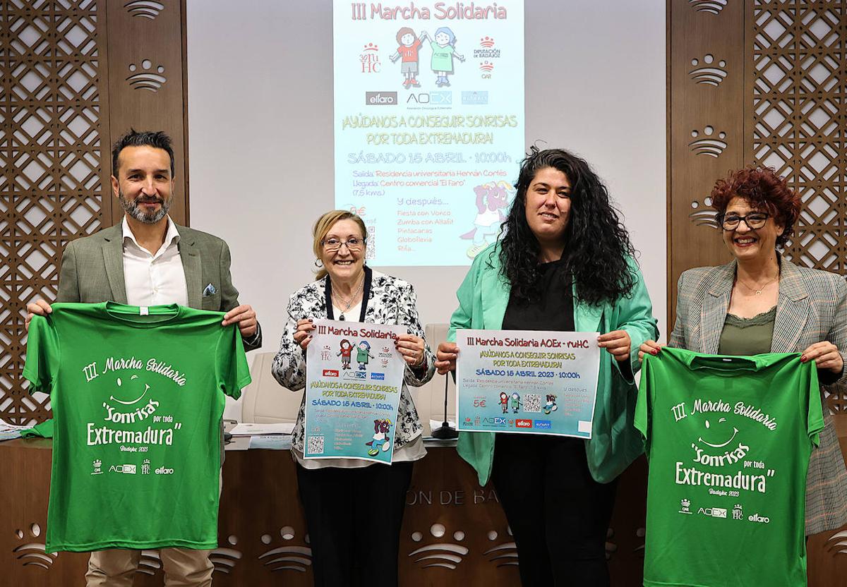 El vicepresidente primero de la Diputación, Ricardo Cabezas, y la presidenta de AOEX, Isabel Rolán, presentaron hoy la III Marcha Solidaria 'Ayúdanos a Conseguir Sonrisas por toda Extremadura' que se celebrará en Badajoz el día 15 de abril.