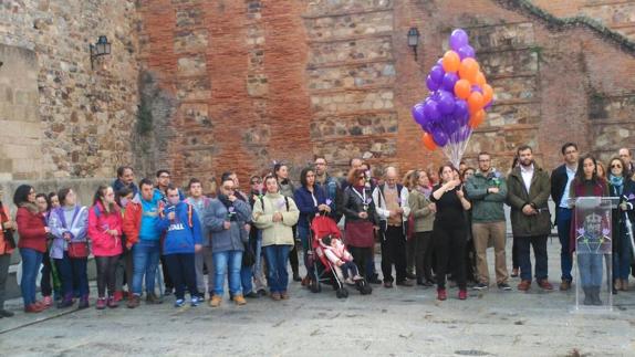 Los usuarios del Centro Ocupacional de Down Cáceres participan en el acto institucional contra la violencia de género.