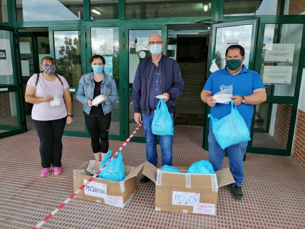Representantes de la asociación de padres del colegio Gregoria Collado entregaron el jueves a la dirección del centro un lote de mascarillas confeccionadas la pasada primavera por el grupo de mujeres jaraiceñas 'Aquí están nuestras manos'.