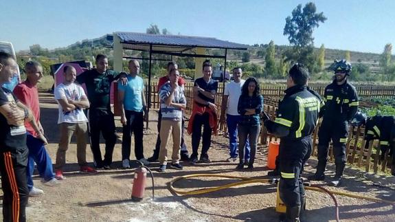 Los usuarios de la entidad tuvieron la ocasión de participar en una charla en la que los profesionales del parque de la comarca de Vegas Bajas les explicaron las nociones básicas sobre el manejo y uso de los extintores. También pudieron aprender de qué están compuestos estos equipos de extinción de incendios, la variedad de tipos que hay y el modo de utilización de cada uno de ellos.