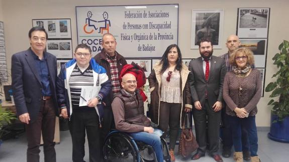 Anxo Queiruga, presidente de Cocemfe Estatal, acompañado del secretario de Organización de la entidad nacional, Daniel-Anibal García, mantuvieron una reunión de trabajo con los responsables de Cocemfe Extremadura, entidad que preside Jesús Gumiel, y que aglutina a las federaciones de Badajoz y Cáceres, cuya máxima responsable es Agustina Portillo.