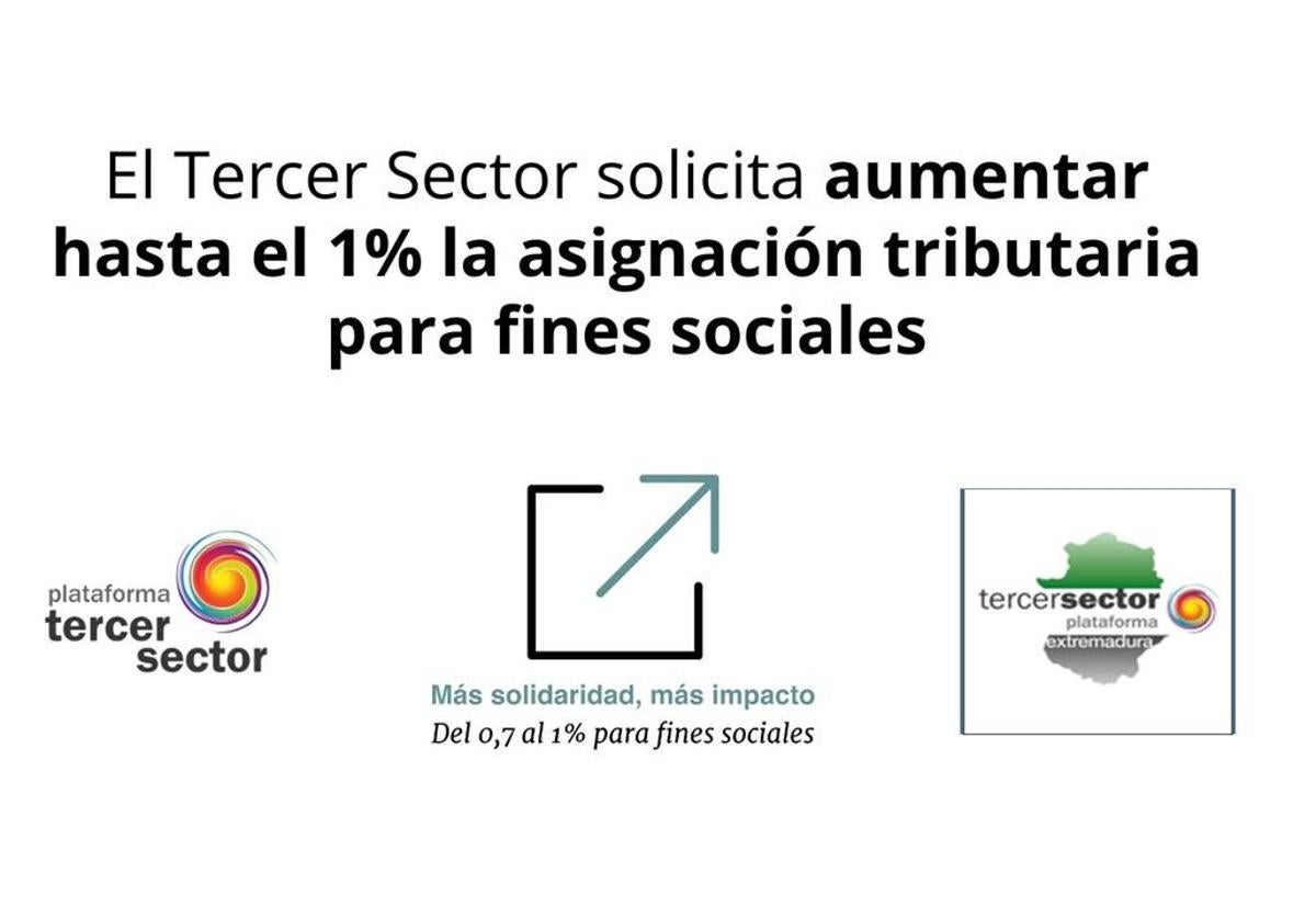 La Plataforma del Tercer Sector que representa a cerca de 28.000 entidades sociales, solicita aumentar del 0,7 al 1 % la asignación tributaria del IRPF y del Impuesto de Sociedades destinada a actividades de interés general consideradas de interés social.