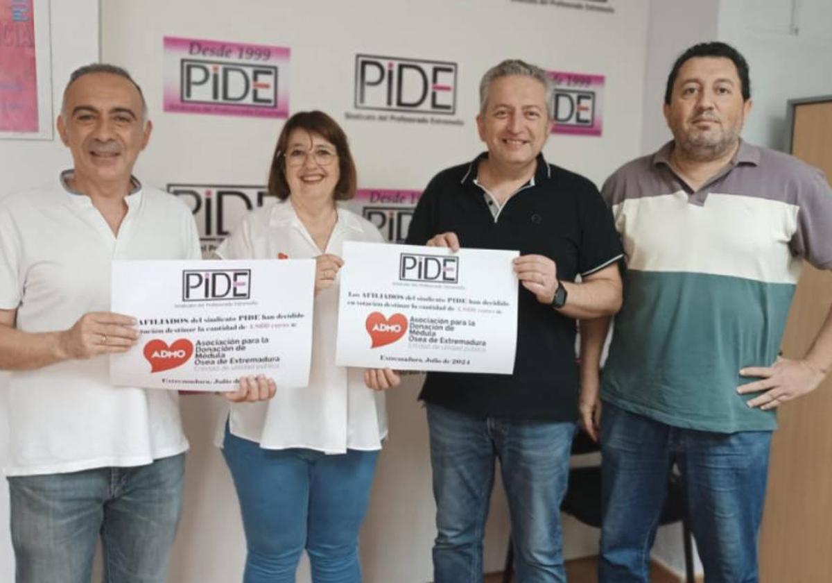 El Sindicato del Profesorado Extremeño (PIDE) ha destinado la misma cantidad que percibe como subvención sindical a ADMO, la Asociación para la Donación de Médula Ósea de Extremadura. Se trata de un total de 4.860 euros, correspondientes a la convocatoria de 2023, que serán entregados a la Asociación extremeña tras la elección de sus afiliados.