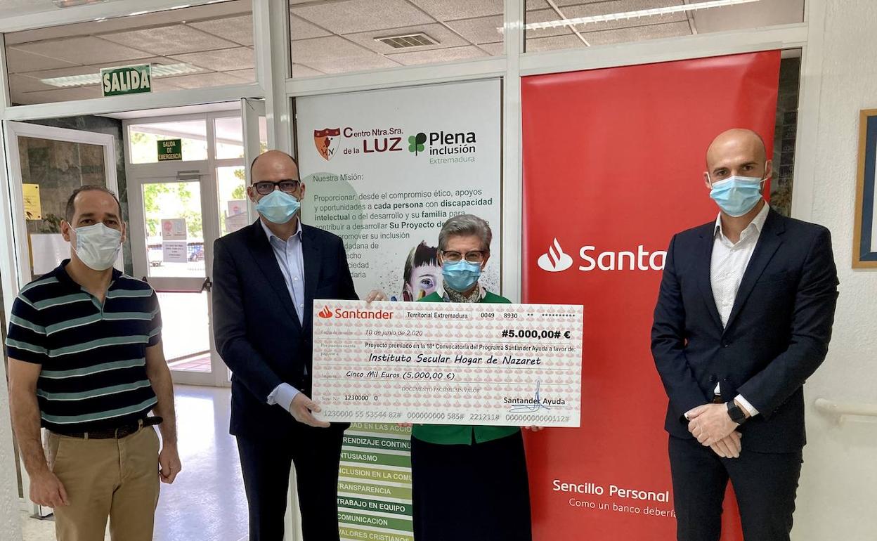 El banco Santander apoya con 15.000 euros a los proyectos del Instituto Secular Hogar de Nazaret y de la Fundación Sorapán de Rieros, en Badajoz, y la Asociación Benéfico-Social Casa de la Misericordia Padre Leocadio, en Cáceres