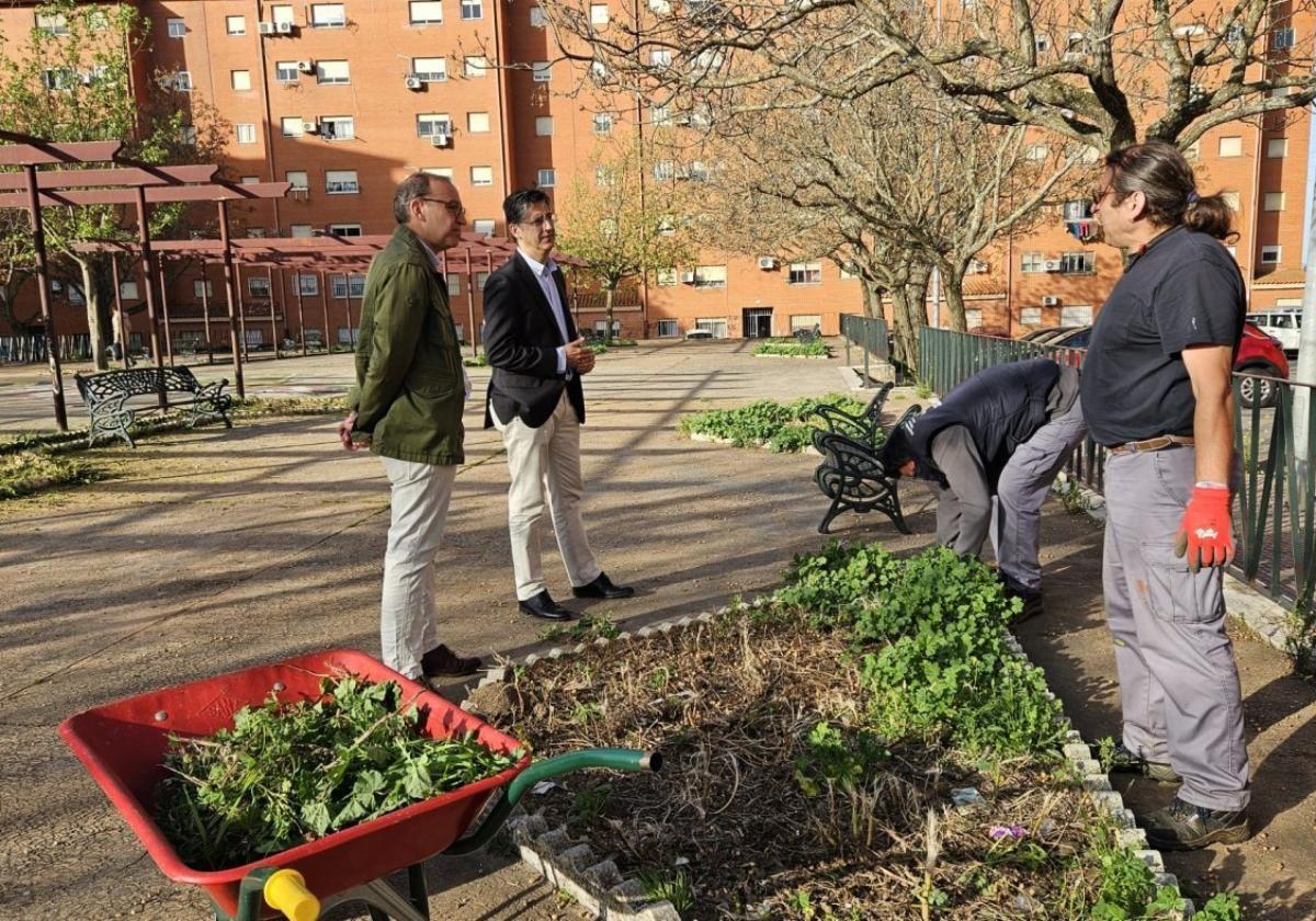 El alcalde de Cáceres, Rafael Mateos, y el concejal de Participación Ciudadana, Víctor Bazo, han visitado el barrio para conocer los trabajos que estaban desempeñando en la zona, y han animado a los alumnos-trabajadores a cuidar el barrio y a seguir formándose para mejorar sus opciones de empleo.
