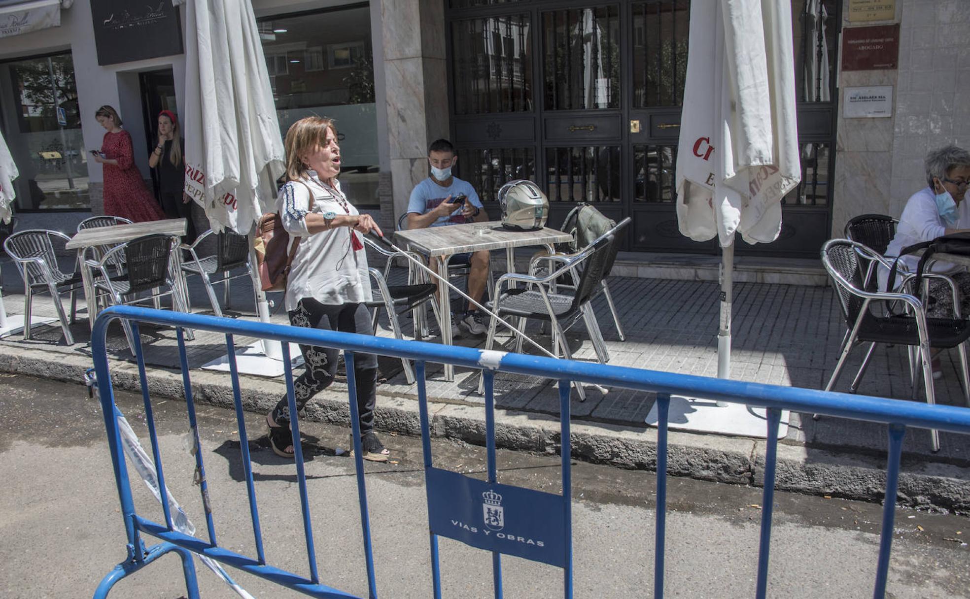 Ella hace recorridos que le son familiares y en las tiendas la conocen. De esa forma, se desenvuelve mejor. Aunque algunos de los cambios que ha provocado el coronavirus también le causan nuevos trastornos en sus desplazamientos. Se ha ampliado el espacio de las terrazas, por lo que en alguno de sus recorridos habituales se han habilitado tramos de la calzada para el tránsito de peatones. «Si están puestas las mesas, me bajo por aquí», dice Eva al llegar a uno de esos puntos. Eso no impide que una trabajadora de uno de los bares tenga que retirar a la carrera una torre de sillas situadas en esa zona. «Entiendo que los bares tengan que seguir haciendo negocio. La situación es excepcional, pero lo cierto es que, en general, no se piensa en las personas ciegas», dice.