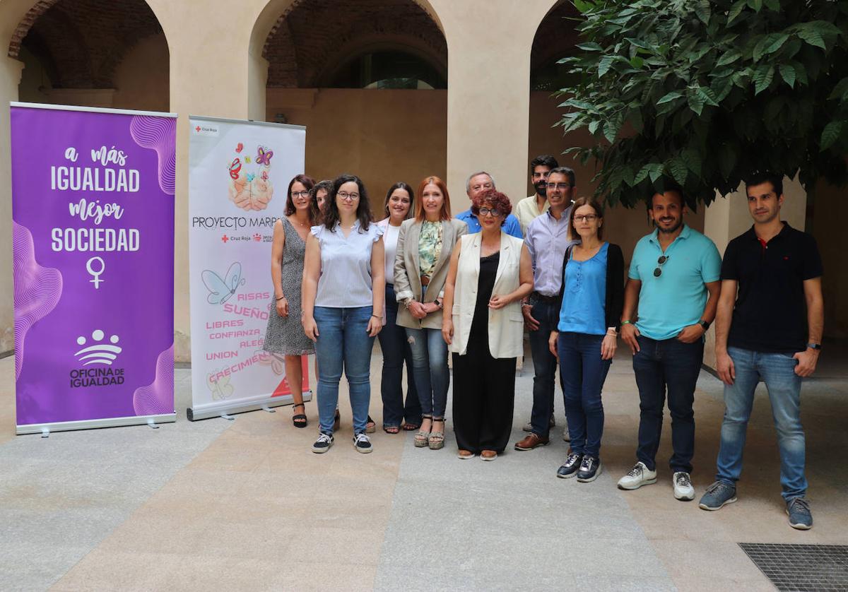 El presidente provincial de Cruz Roja, Alfonso Méndez; los técnicos María Gómez y Jesús Amaro, y la diputada de Igualdad de la provincia de Badajoz, Lourdes Linares, han presentado en la mañana de este jueves el proyecto 'Autoexpresión, Empoderamiento, Ocio y Tiempo Libre de Hijas e Hijos de Mujeres Víctimas de Violencia de Género', también conocido como Proyecto Mariposas.